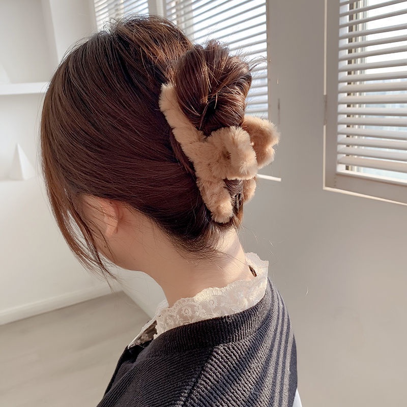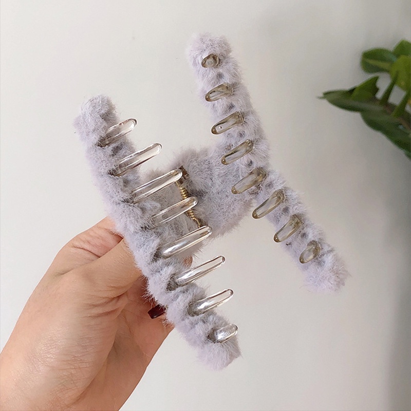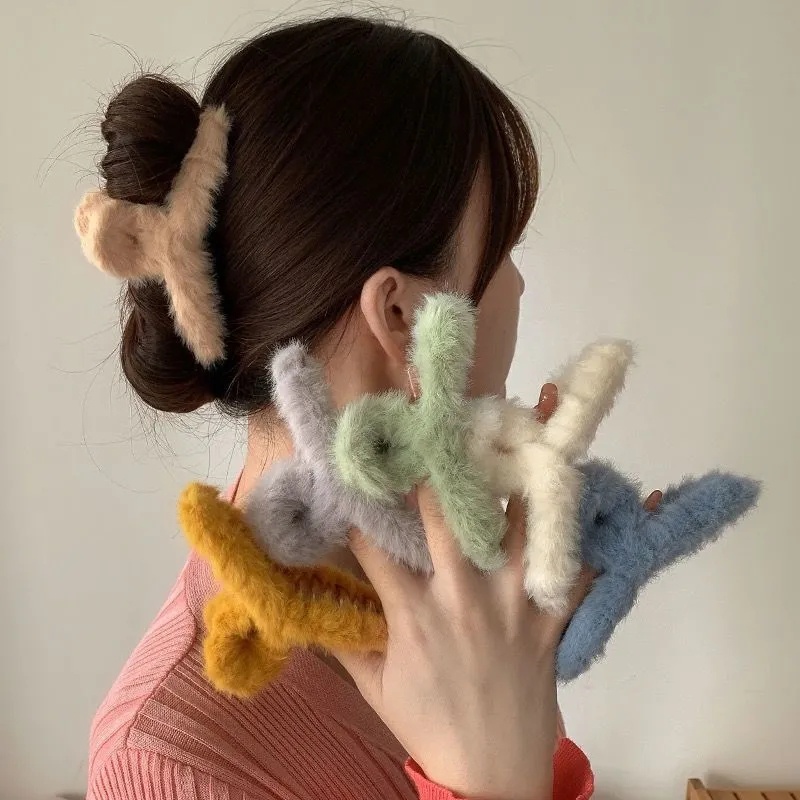 [Candy Color Faux Fur Hair Clips Clamps] [Plush Hair Claws Furry Shark Clip][French Back Head Hair Catch Barrette][Women Hair Crabs Clip Hair Accessories]