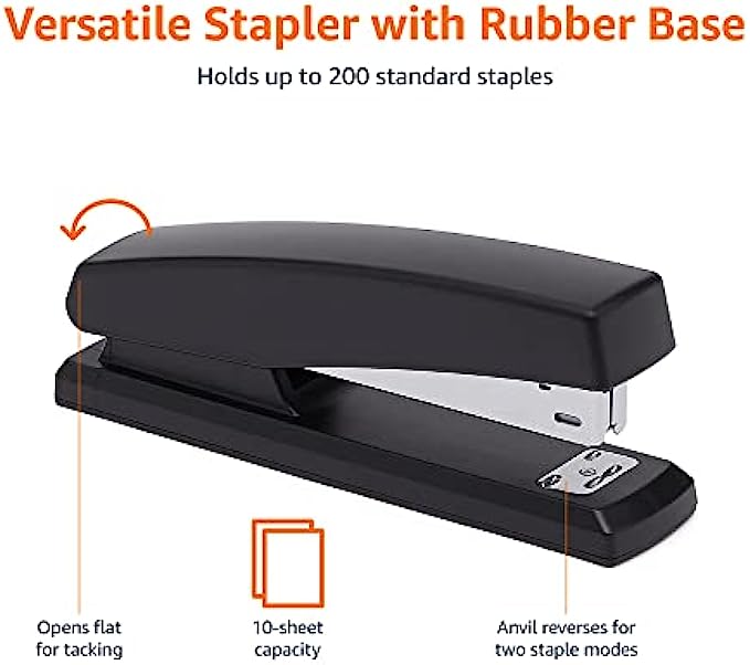 • Desktop office stapler that holds up to 200 staples; 10 sheet stapling capacity
