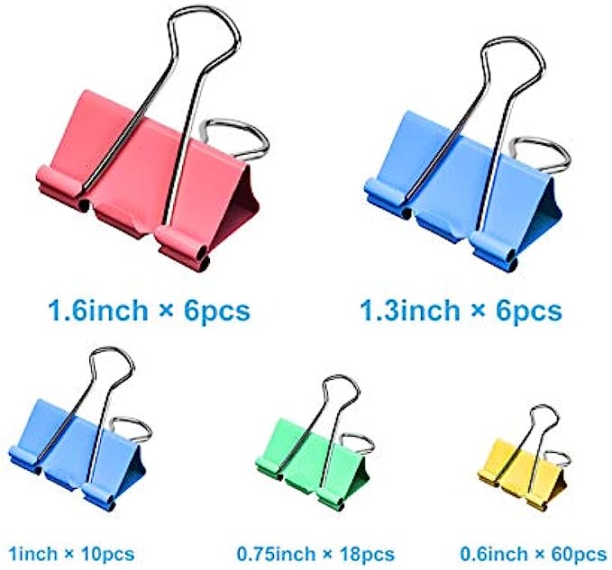 • What You Can Get: 100 beautiful coloured Binder Clips Help you organise messy documents, food, clothes. Our team provides timely and excellent after-sales service.