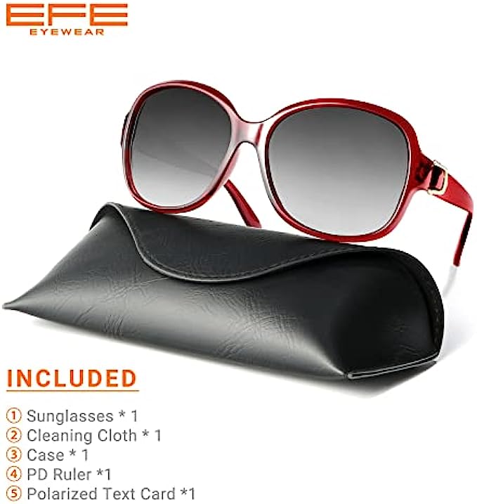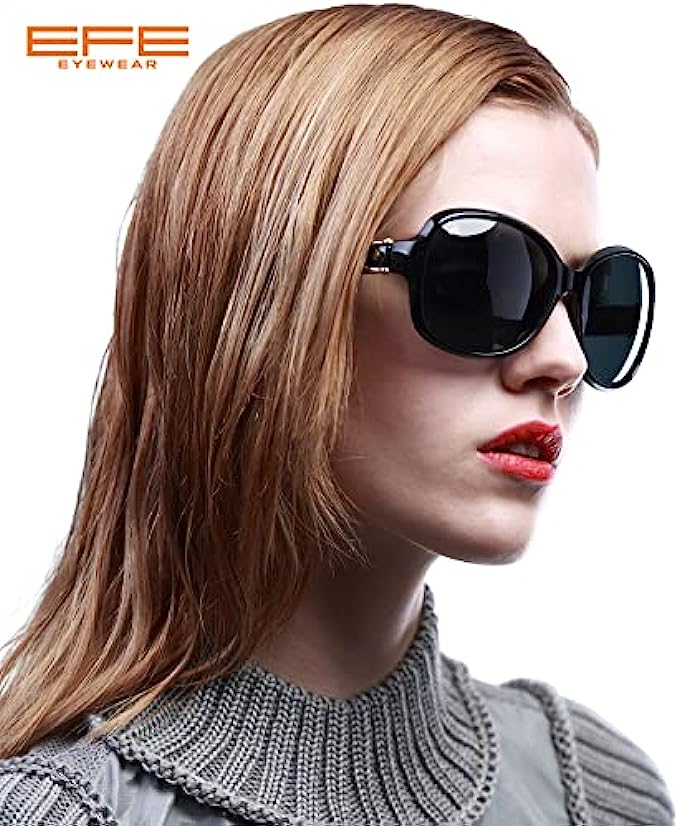 EFE Classic Oversized Polarized Sunglasses for Women Composite TR90 Frame UV 400 Protection Fashion Retro Eyewear