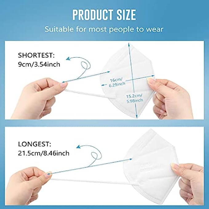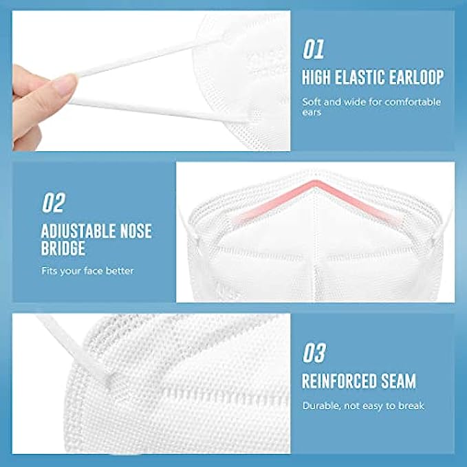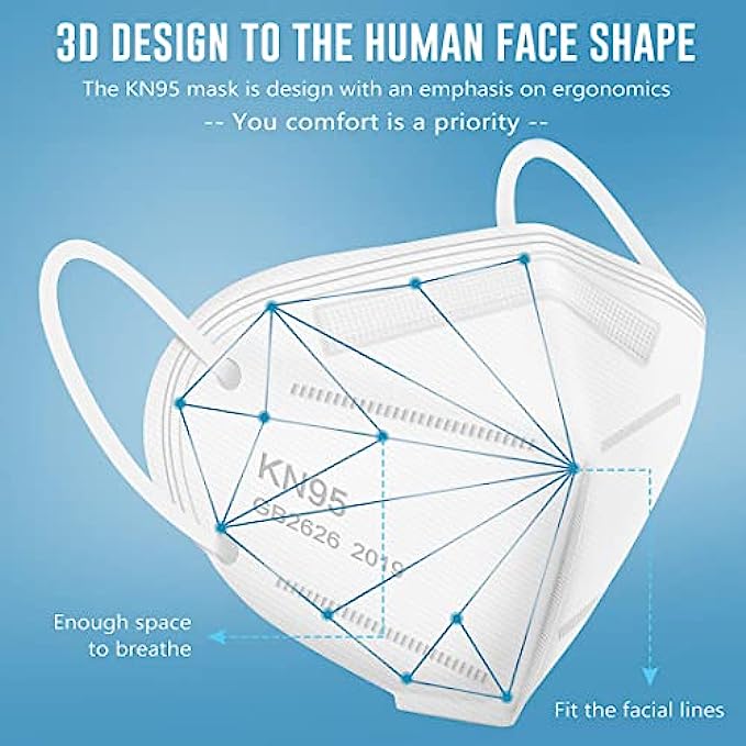 Skin-friendly and Comfortable : These KN95 face mask use skin-friendly non-woven fabric, no irritation to your skin, High-elastic ear loops and adjustable nose clip to ensure a comfortable fit and no strain of ears