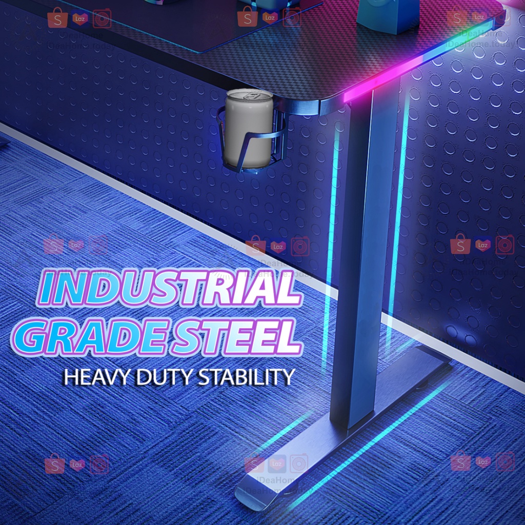L-Shape RGB Gaming Desk with Led Lights, Table Computer Workstation with LED RGB Lights, Headphone Hook and Cup Holder for Home