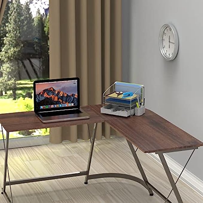 SimpleHouseware Desk Organizer 3 Tray w/Sliding Drawer, Hanging File Holder and Pen Holder Accessory, Silver
