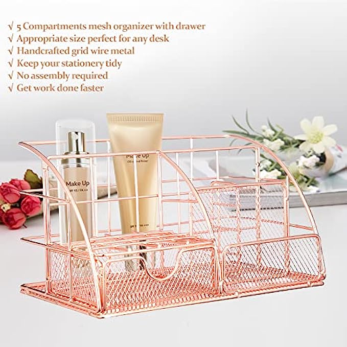 STAY ORGANIZED IN STYLE: Whether you commute to an office or work from home, these rose gold desk accessories will keep you organized while also looking great in any work space. And you can easily store business cards, notepads, pens, charging cable and other office supplies.