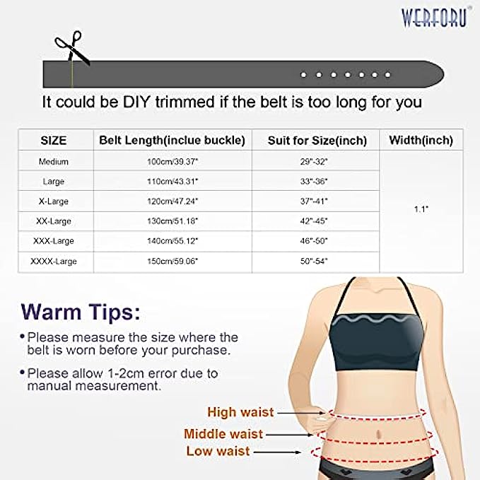High Quality Material --- This women plus size belt is made of quality leather that is pretty soft and comfortable to wear. Clear texture on the belt strap and smooth touch feeling. Our plus size lady belt is sturdy enough to be used for years.