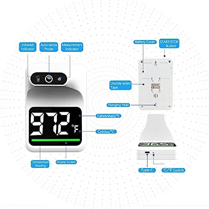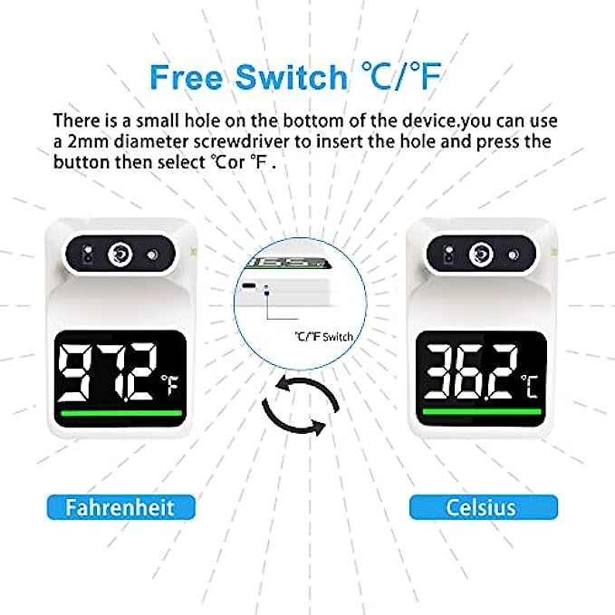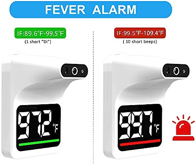 Fever Alarm : When ≥ 37. 5℃ (99.5℉) is detected, the color indicator will switch from green to red and the alarm will give 10 short beeps to draw attention.