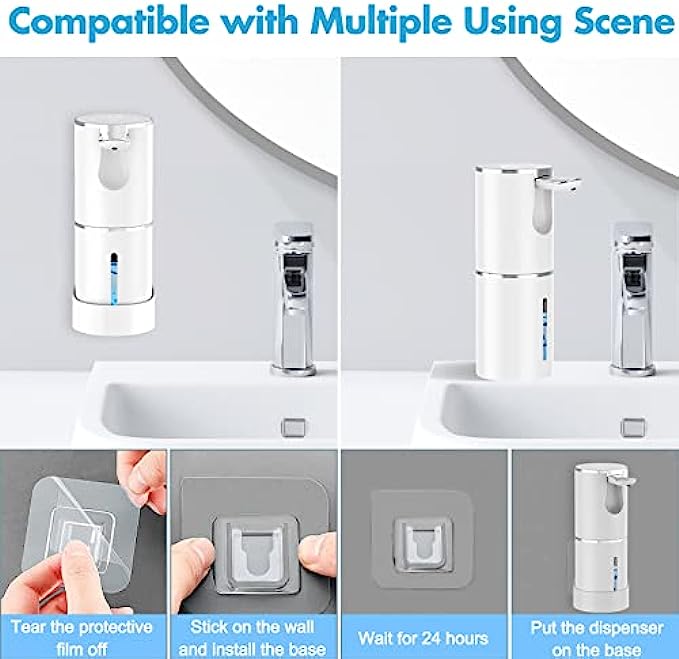 FOLDABLE WATERPROOF AND WALL MOUNTED DESIGN: The nozzle and charging port are protected to IPX4 waterproof rating (avoid immersion in water), making it easier to clean. The hands-free soap dispenser foldable design can be placed on the bathroom wall or on the side of the kitchen sink to protect the soap dispenser from dust and water splashes.