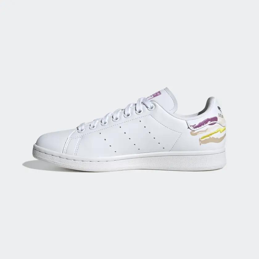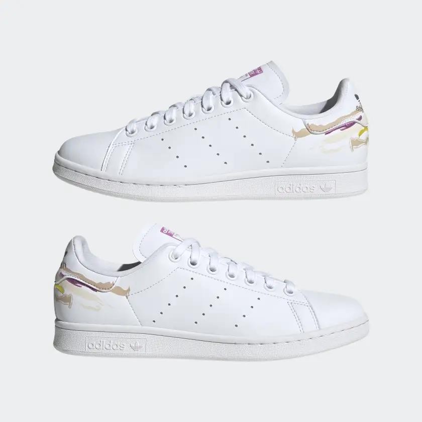 ADIDAS X THEBE MAGUGU STAN SMITH SHOES MADE IN PART WITH RECYCLED CONTENT.