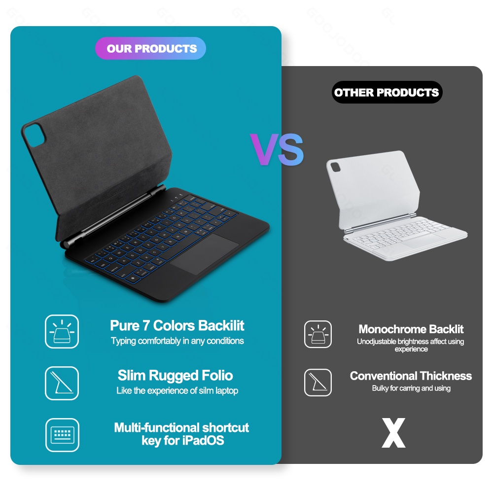 Goojodoq for ipad keyboard with Case for Air 4 Air5 Air6/Pro 11 2018-2021 /Gen10 10.9 2022/12.9 2018-2021/floating cantilever cover wireless bluetooth for ipad keyboard