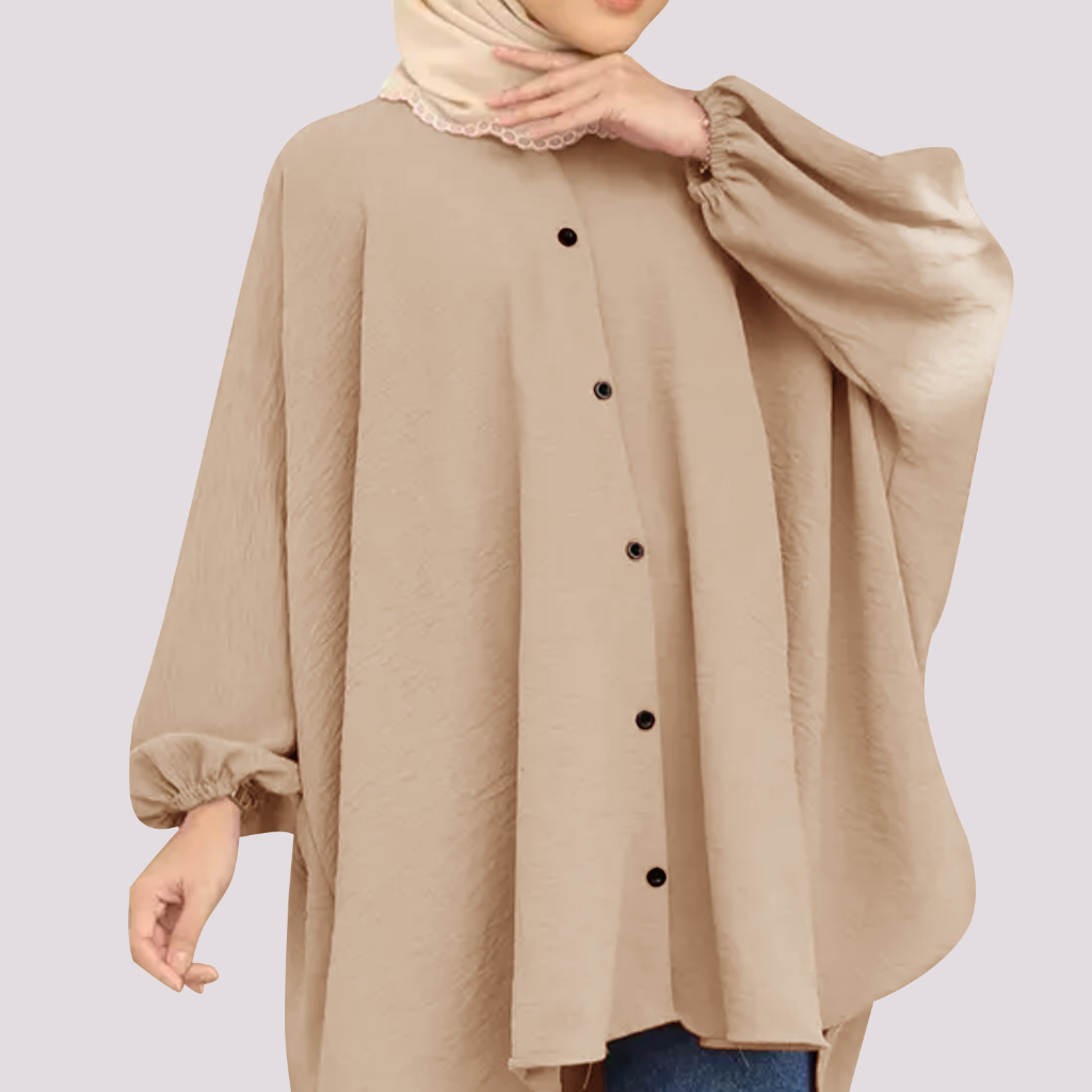 Received the delivery of Korean Style Women Long Friendly Sleeve Blouse Italian Crepe Viral Shirt Baggy Top Blouse Viral promptly. This is a repeat purchase as I am so in love with the material and comfortability. Suits hijabis as it is loose fitting. Thank you seller. I will definitely purchase again for different colors.