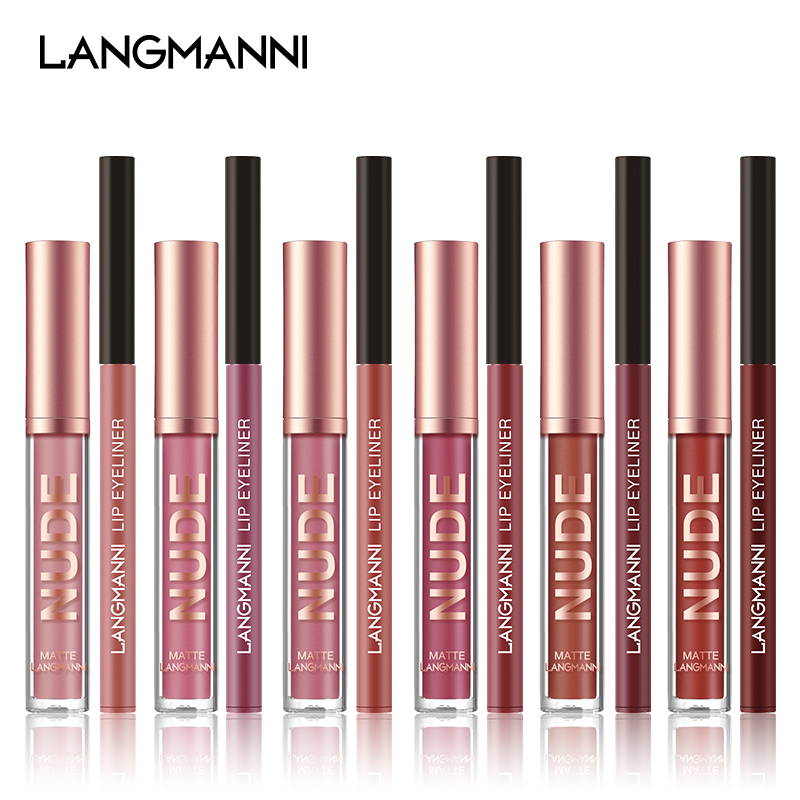 Lip Gloss Lip Liner Set 2 Pieces Set Not Easy to Stick Cup Matte Lip Gloss Set