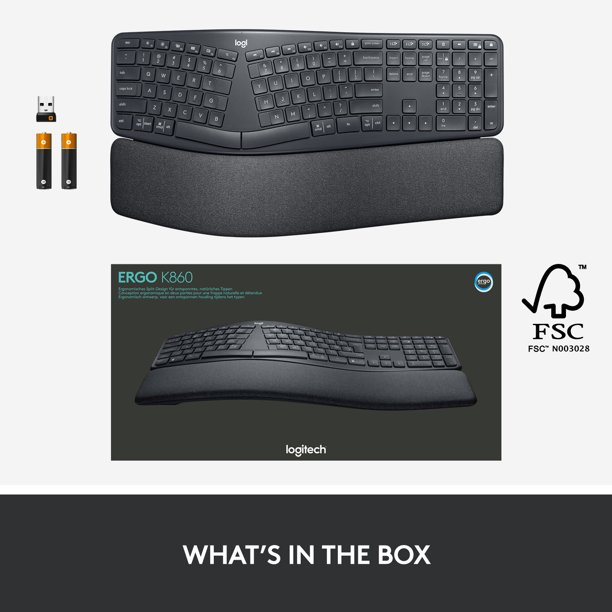 Ergonomist Approved: The ERGO K860 wireless ergonomic keyboard is certified by United States Ergonomics to improve posture and lower muscle strain