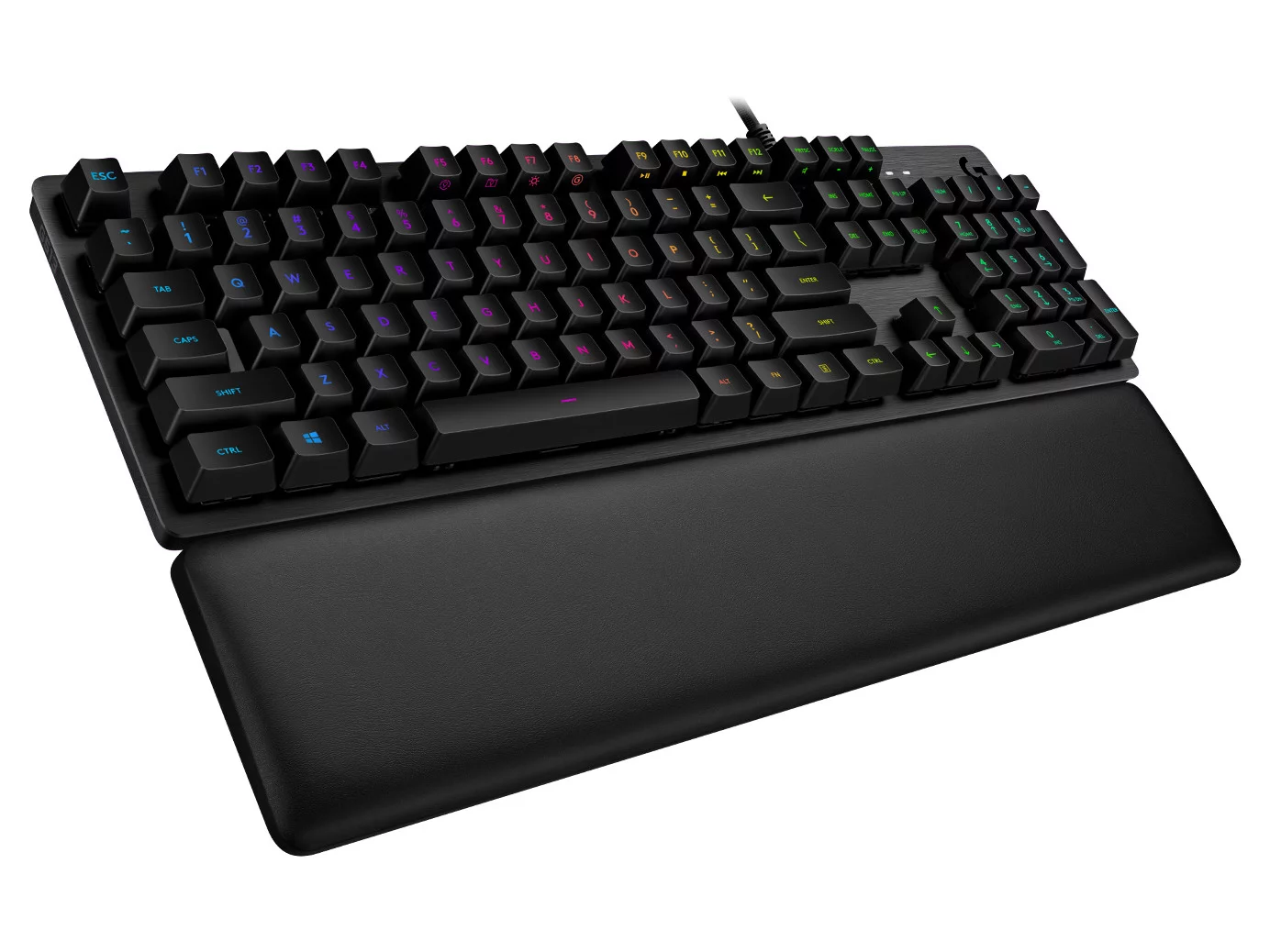 Logitech G G513 Lightsync RGB mechanical gaming keyboard with palmrest featuring your choice of GX mechanical switches. The detachable, memory-foam palmrest and premium aluminum-alloy construction make G513 full-featured and best-in-class.