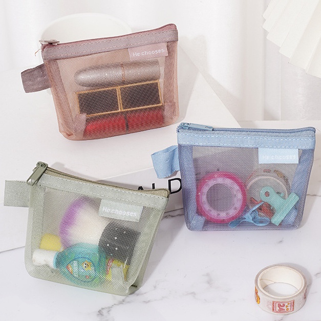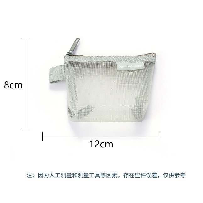 True to description: true Color: blue Material: mesh fabric Convenient, not too small to hold cccd, bank card and 1 other small things, easy to carry, so buy it