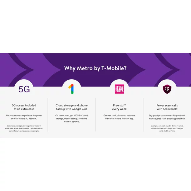 激活或使用服务,即表示您同意 Metro by T-Mobile 的条款和条件(“Metro T&Cs”),Specifications