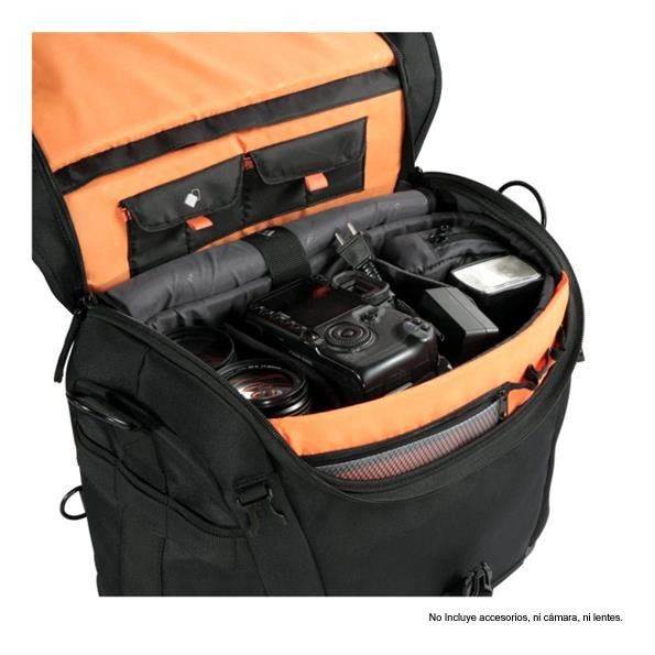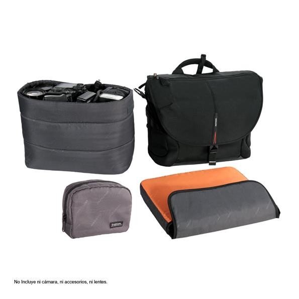 Los compartimentos internos, divisores y bolsas bien acolchados ofrecen una configuración fácil y versátil. El HERALDER 33 lleva sin esfuerzo un kit de engranaje profesional, que consiste en una réflex digital profesional, un cuerpo adicional, 5-6 lentes (hasta 70-200 mm f / 2,8), un flash y una multitud de accesorios. Otros elementos esenciales también se abordan y protegen en un compartimento para 13 computadoras portátiles de pantalla ancha y bolsillos de accesorios dedicados, y para el segmento de fotoperiodista impulsado por video de rápido crecimiento, nuestro sistema de transporte de trípode óptimo está integrado en el diseño. En Vanguard sabemos que una gran bolsa es una que q